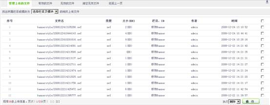 可以对网站上传的文件进行管理删除等操作,点击(管理上传的文件、 有效的文件、无效的文件、清空无效文件)可以对网站上传文件虑选后进行删除更新等操作。
