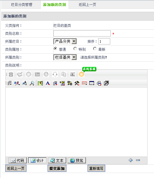栏目分类添加